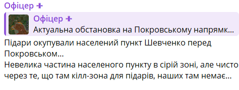 Одним із ключових пунктів щодо відрізання Покровська є захоплення великого села Шевченка.