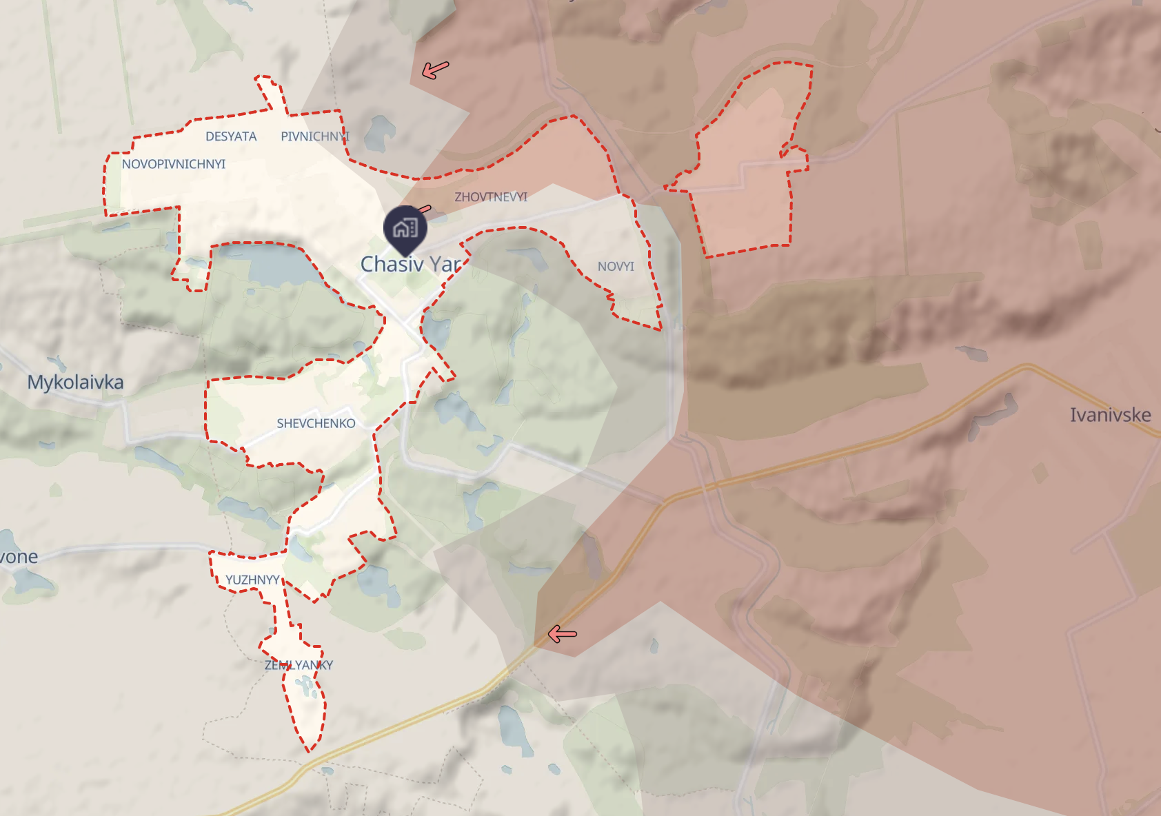 Складна ситуація складається в районі Торецька та Часового Яру. ЗСУ втратили контроль над шахтою "Центральна" та її териконами в Торецьку, повідомляє "Мучна".
