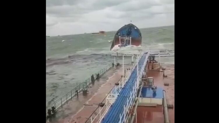 Російські ЗМІ пишуть, що на борту цих танкерів перебуває понад 8 тисяч тонн мазуту. Повідомляється, що потужні хвилі пробили судна.