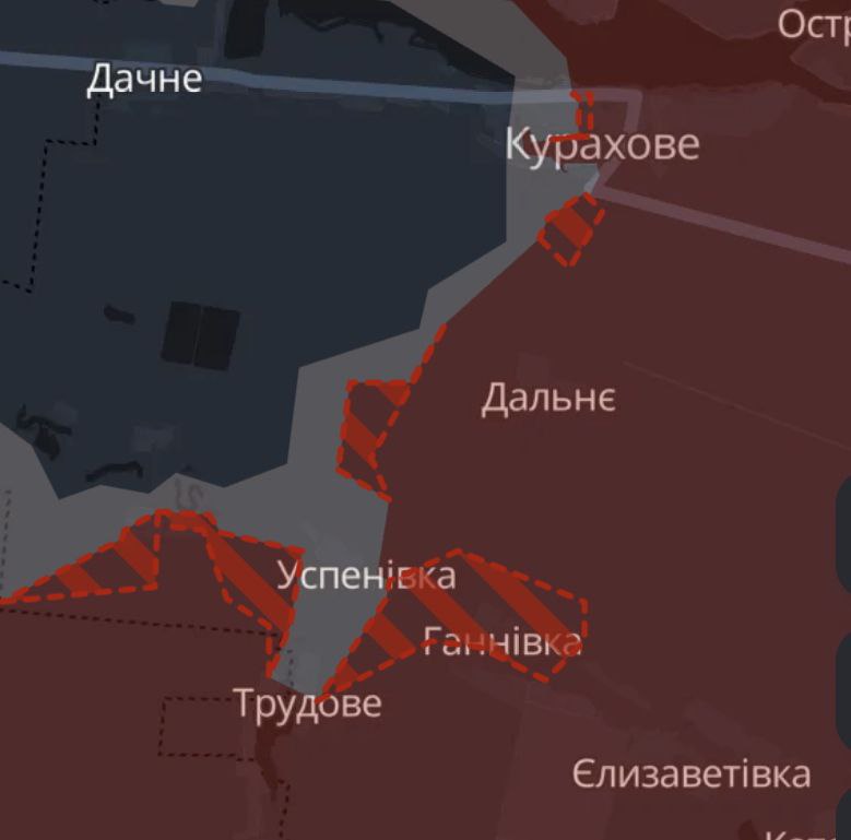 Західні росіяни, як видно по карті Deep State, ще ближче підійшли до траси на Курахово із заходу. Вони вже менші, ніж за два кілометри від ключового села Константинополь.