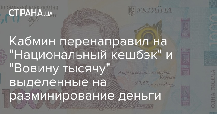 Кабінет міністрів України перенаправив на "Національний кешбек" та "Вовину тисячу" виділені для розмінування гроші.