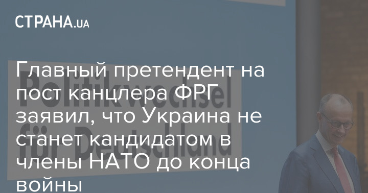 Головний претендент на посаду канцлера ФРН заявив, що Україна не стане кандидатом у члени НАТО до кінця війни