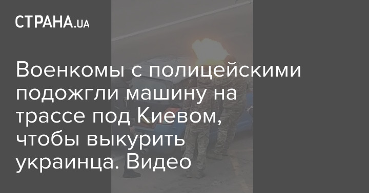 У ході мобілізаційних заходів вбрання військкомів у присутності поліцейських задуло газом салон автомобіля, де, ймовірно, знаходиться військовозобов'язаний, і підпалюють його, щоб змусити пасажира вийти.