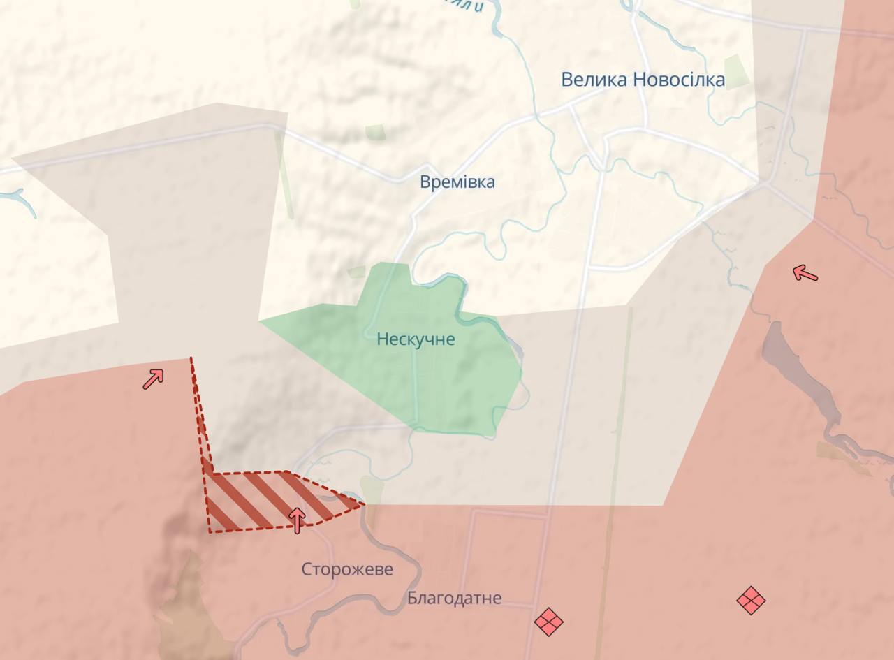 РФ має просування і під Великою Новосілкою, там захоплено Сторожову північніше захопленої напередодні Макарівки, де ЗСУ, за даними Deep State, вирвалися з оточення.