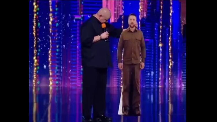 Номер "Кварталу" з картонною фігурою Зеленського. Скріншот відео