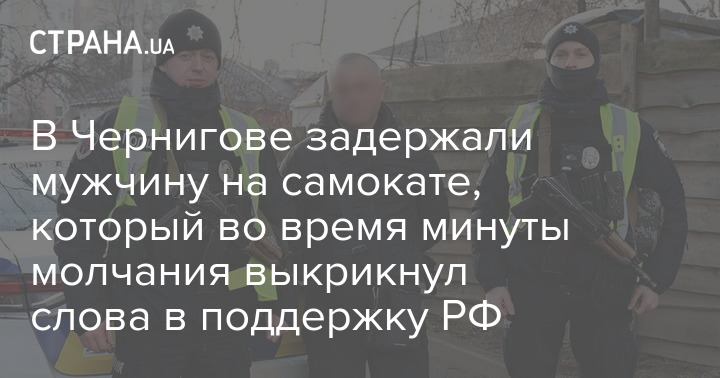 У Чернігові затримали чоловіка на самокаті, який під час традиційної хвилини мовчання біля меморіальної стели загиблим військовим "вигукнув слова на підтримку" РФ.