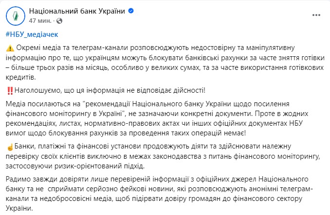 Новину опублікував з посиланням на внутрішні рекомендації Нацбанку один із сайтів, після чого на неї послалися багато видань та телеграм-канали.