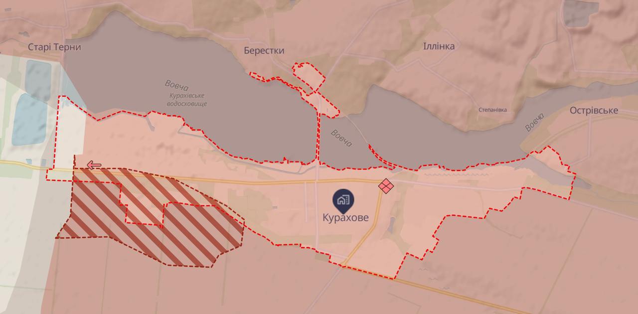 Російські війська знову просунулися в Кураховому та під Покровськом у Донецькій області. Про це свідчить мапа українського військового пабліка Deep State.