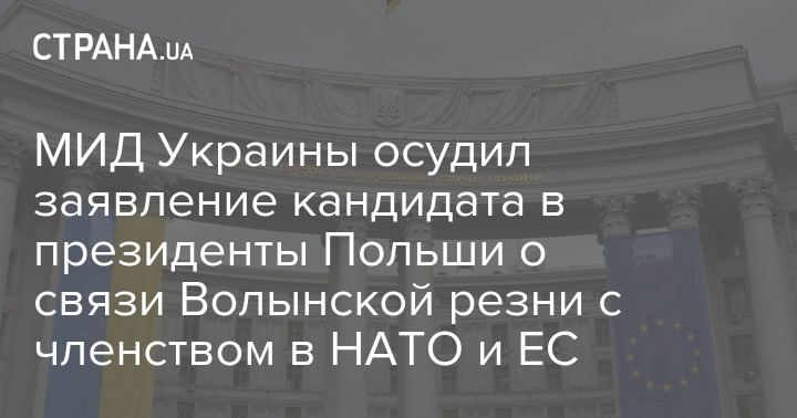 МЗС України засудило заяву кандидата в президенти Польщі про зв'язок Волинської різанини з членством у НАТО та ЄС