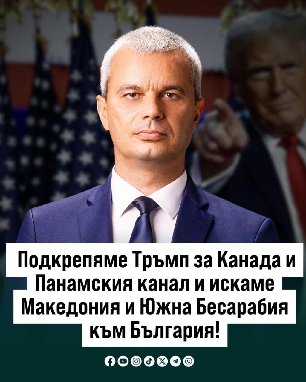 Свою заяву зробив у контексті бажання Дональда Трампа приєднати до США Канаду, Грнеландію та Панамський канал, яке Костадінов підтримує.