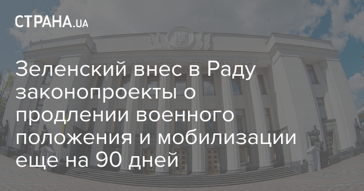 Володимир Зеленський вніс до Верховної Ради законопроекти щодо продовження військового стану та мобілізації ще на 90 днів.
