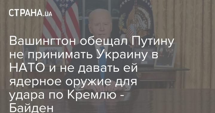 Голова Білого дому, що йде, Джо Байден розповів, як запевняв Володимира Путіна, що США не приймуть Україну в НАТО і не дадуть їй тактичну ядерну зброю (ТЯЗ), щоб вона не змогла вдарити по Кремлю.
