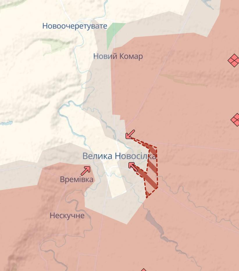 11.37 Армія РФ просунулась на південному сході Великої Новосілки, що оточена з трьох сторін, свідчить карта Deep State.