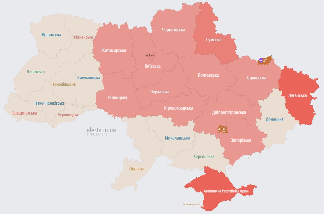 18.16 Тривога у Києві та низці областей через загрозу балістики.