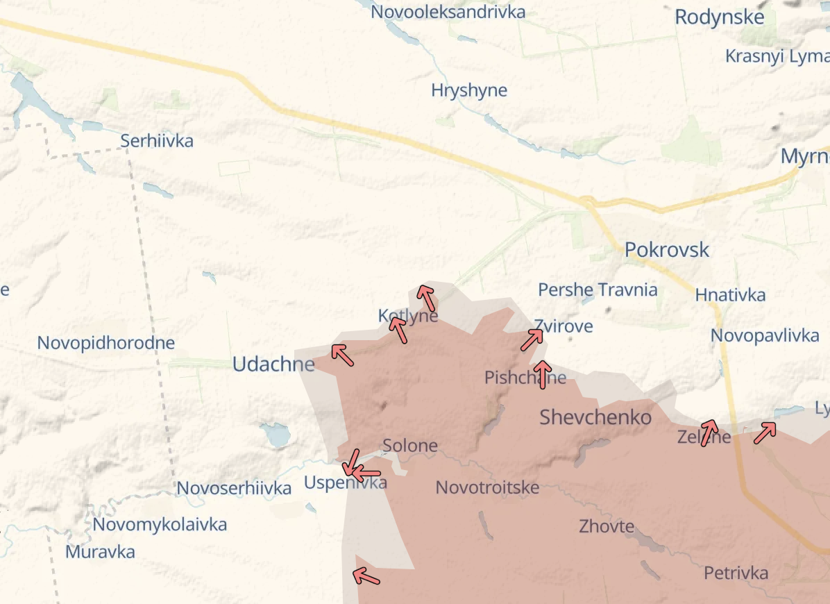 На Покровському напрямку росіяни намагаються рухатись у напрямку Сергіївки (правий фланг дороги Павлоград – Покровськ), повідомляє український військовий Станіслав Бунятов. За його словами, "якщо подивитись на карту, то стає дуже сумно".