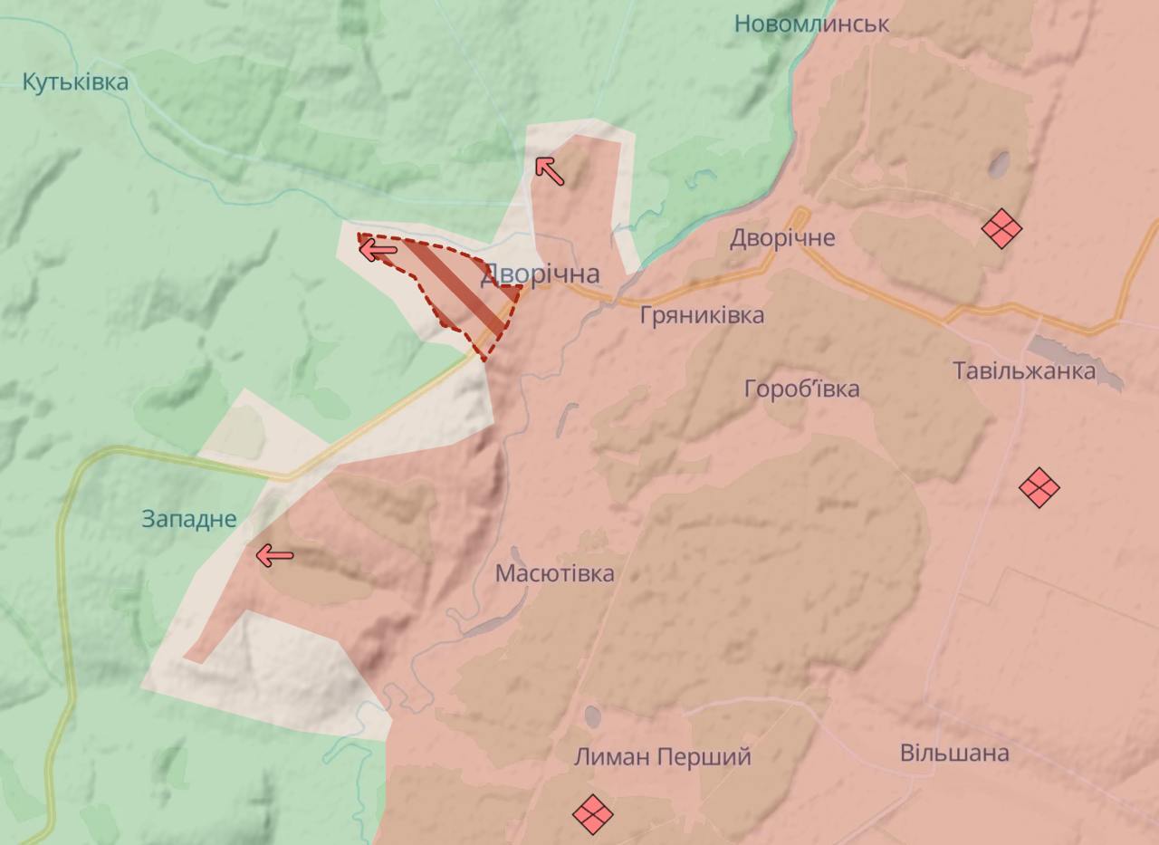 А також на північній частині фронту в Харківській області – захопила суттєву частину Дворічної та просунулась під Боровою.
