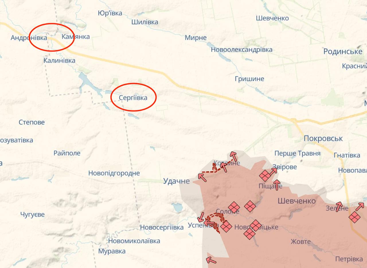 Наразі війська РФ перерізали залізницю між Удалим та Котліним і наступають у бік Сергіївки, звідки до кордону Дніпропетровської області – близько 3 км. До населеного пункту вже долітають ФПВ-дрони.