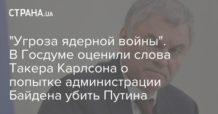 Глава Державної думи РФ В'ячеслав Володін заявив про "загрозу ядерної війни" після інтерв'ю американського журналіста Такера Карлсона, де той повідомив про спробу замаху на російського лідера Володимира Путіна.