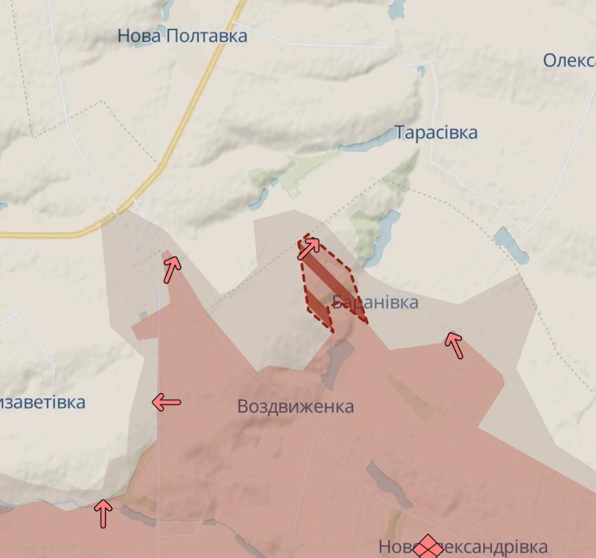 Про це свідчить мапа українського військового телеграм-каналу Deep State.