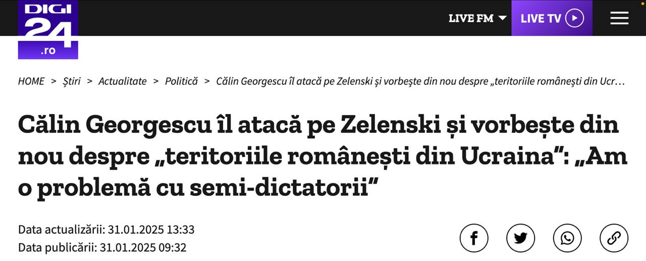 Нагадаємо, вчора Джорджеску заявив, що Україна - це "вигадана держава", яку розділять сусіди. Україна засудила таку позицію звинувативши політика в роботі на Кремль, а Румунія відхрестилася від його слова.