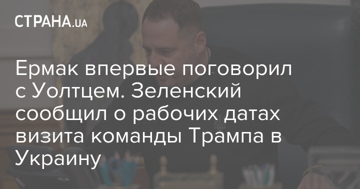 Єрмак уперше поговорив із Уолтцем. Зеленський повідомив про робочі дати візиту команди Трампа до України