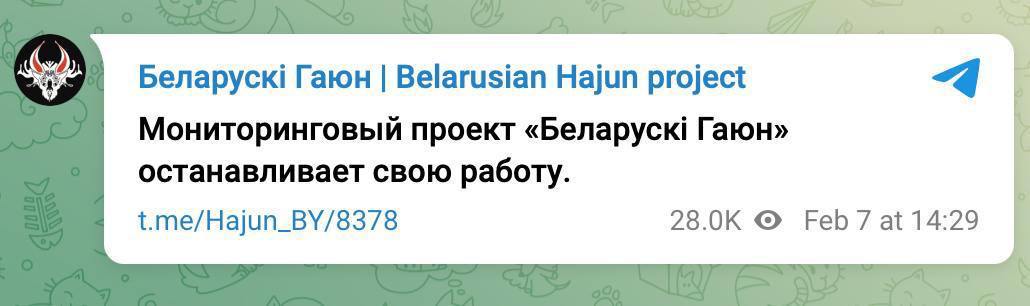 Зазначимо, що моніторинговий проект "Беларускі Гаюн" повідомив, що зупиняє свою роботу.