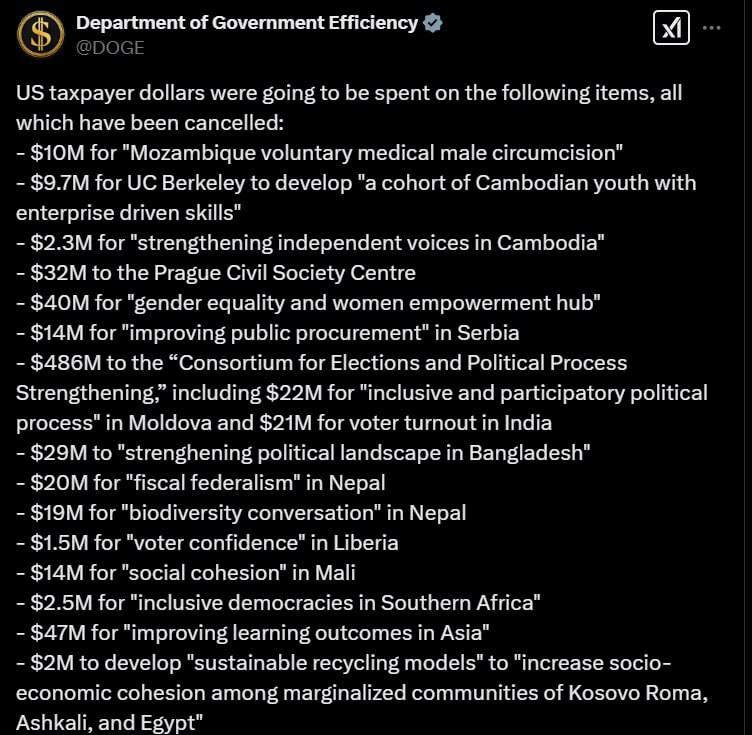 У повідомленні DOGE зазначається, що всі ці витрати було скасовано.