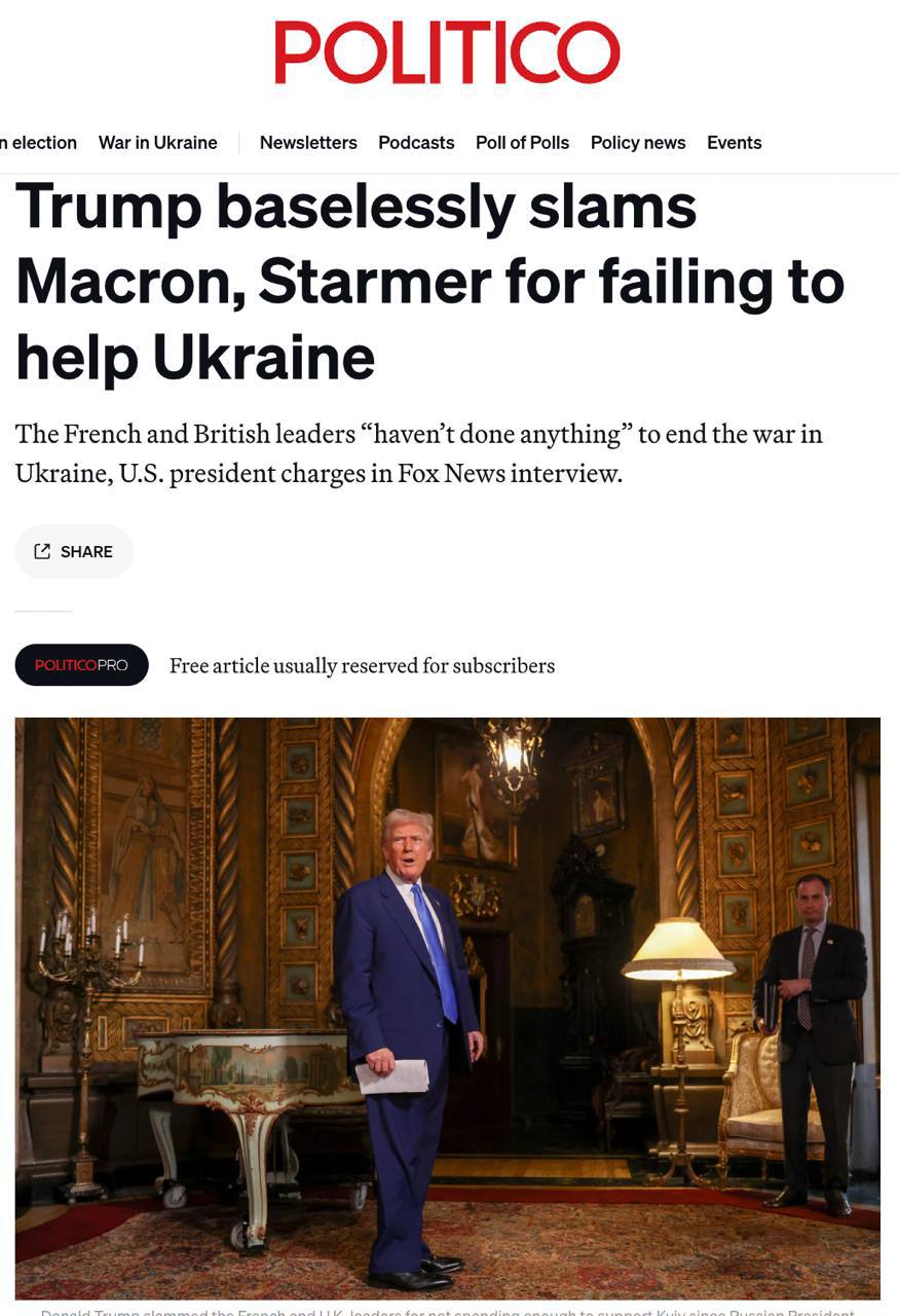 Президент США розкритикував лідерів Франції та Британії за те, що вони не витрачали достатньо коштів на підтримку України.