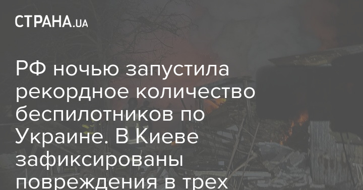 РФ вночі запустила рекордну кількість безпілотників по Україні. У Києві зафіксовано пошкодження у трьох районах