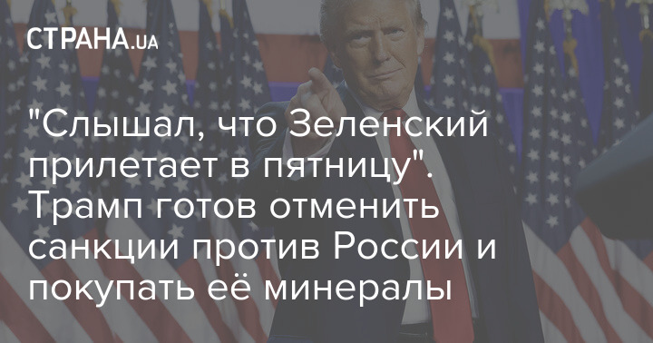 "Чув, що Зеленський прилітає у п'ятницю". Трамп готовий скасувати санкції проти Росії та купувати її мінерали