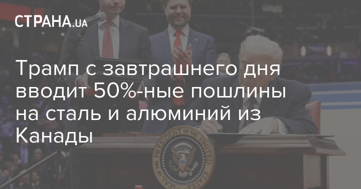 Президент США Дональд Трамп із завтрашнього дня вводить мита до 50% на канадську сталь та алюміній.