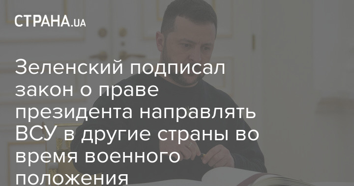 Володимир Зеленський підписав ухвалений парламентом закон про право президента України спрямовувати підрозділи Збройних сил до інших держав у період дії військового стану для забезпечення національної безпеки.