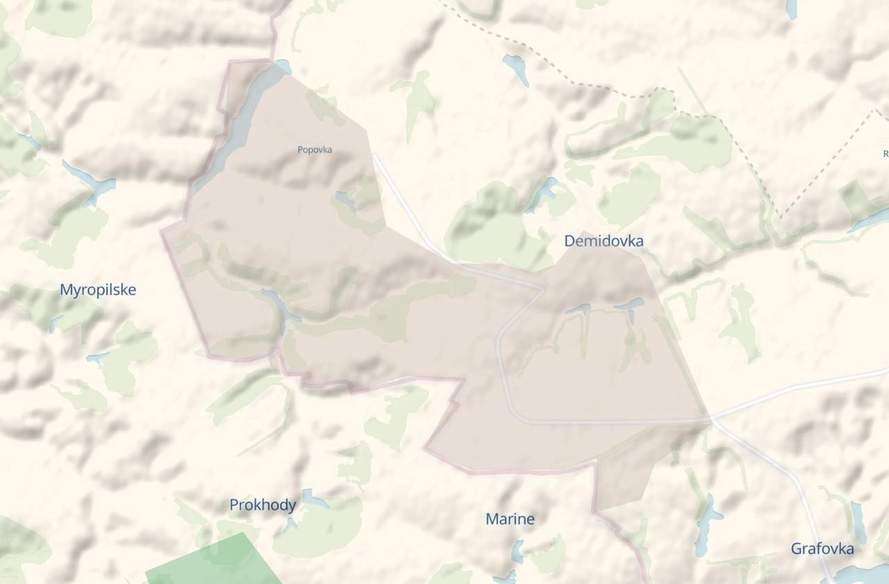 Український паблік опублікував карту із сірою зоною в районі села Демидівка, за яке йдуть бої. Також вони йдуть у сусідній Попівці.