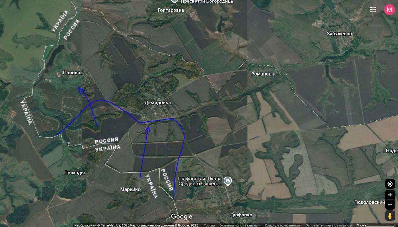 "Минулого тижня почали з'являтися кадри поразок по українських підрозділах у Демидівці та в її околицях. Ворог намагається прорвати кордон у Сумській області (біля Басівки та Володимирівки), щоб створити санітарну зону. Відповідно, симетрично діють і Сили оборони, щоб не дати так ініціативи Білгородська область.