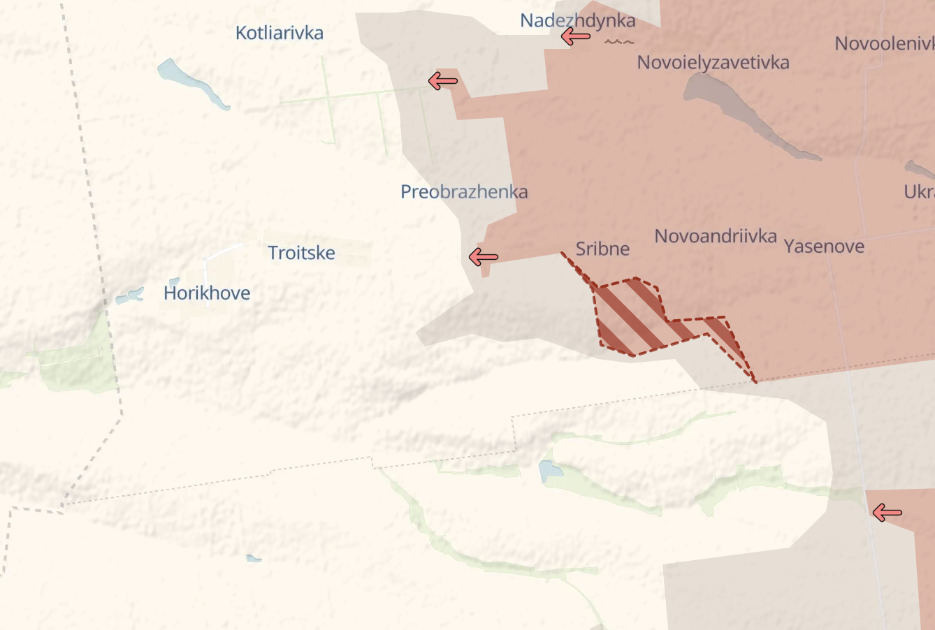Російські війська просунулися біля кордонів Донецької та Дніпропетровської областей - у районі села Срібне, свідчить карта Deep State.