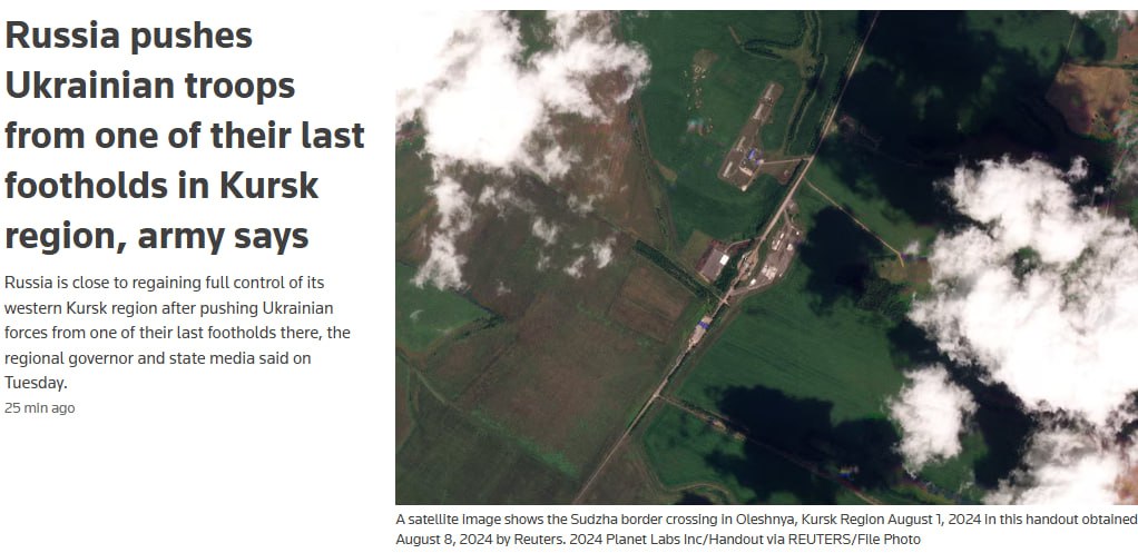 Росія витіснила українські війська з однієї з останніх позицій у Курській області, повідомляє агентство, посилаючись на відео, опубліковане міноборони РФ, на якому відображено момент повернення під контроль Гуєво.