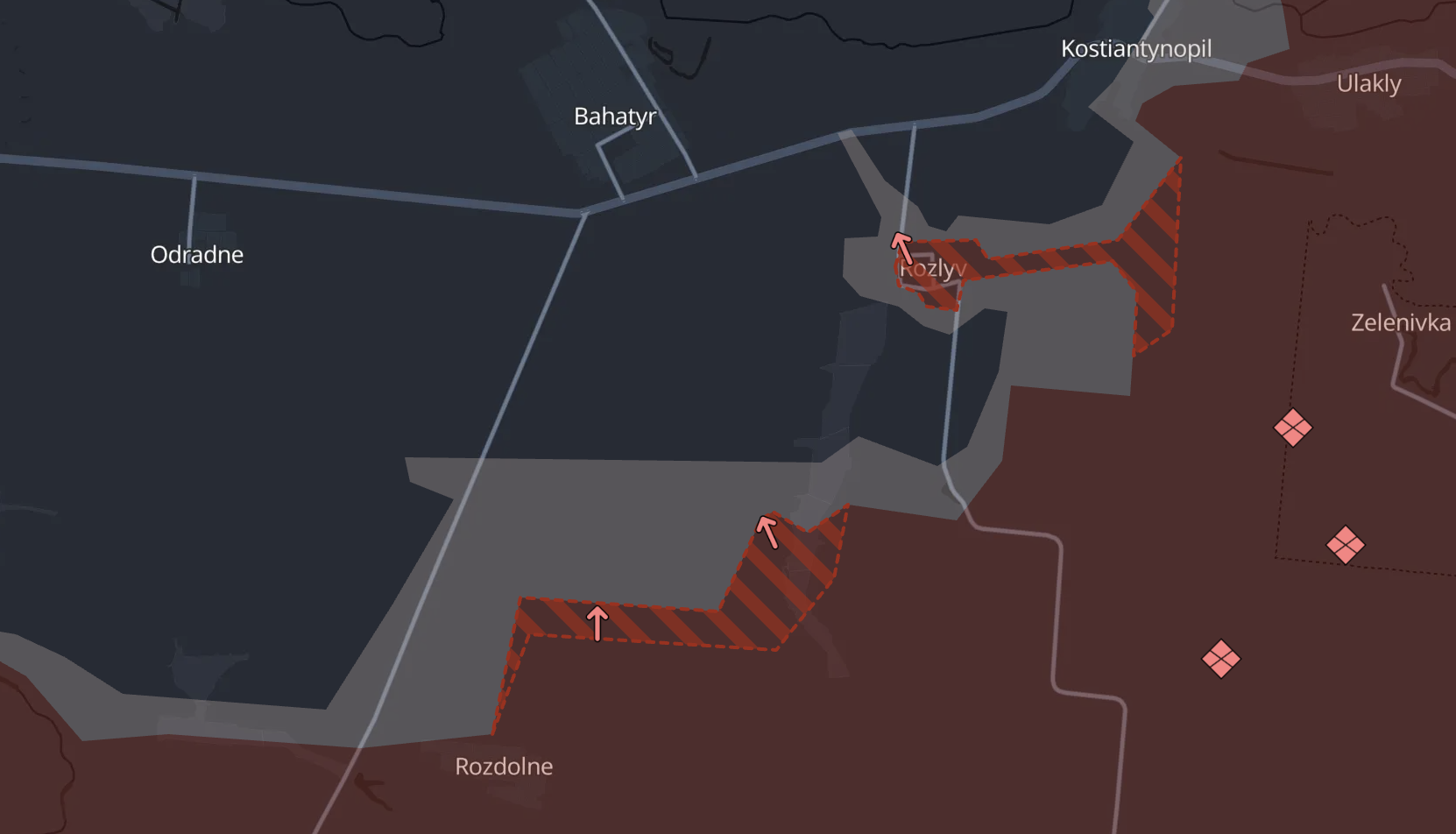 Російські військові телеграм-канали пишуть про захід до сусідньої Котлярівки та взяття школи у селі Троїцьке. Україна цього не підтверджувала. На карті Deep State у цих селах присутності РФ немає.