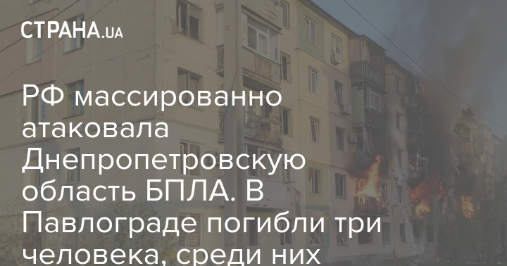 Сьогодні вночі росіяни масово атакували Дніпропетровську область безпілотниками. Внаслідок атаки у Синельниківському та Самарівському районах виникли пожежі на території підприємств. У Павлограді горіла багатоповерхівка.