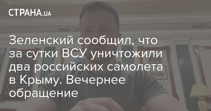 "Блискучим було збивання російського військового літака за допомогою нашого морського дрону – доказ українських можливостей. Дуже точно наша армія провела операцію з військових об'єктів на території Криму: мінус ще один, другий російський літак за добу. Також знищено військові склади", – сказав президент.