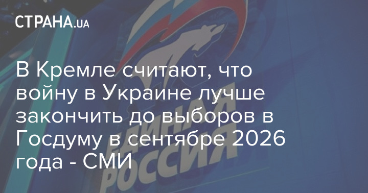 У Кремлі вважають найкращим сценарієм з погляду підготовки до виборів до російської Державної думи, які мають відбутися у вересні 2026 року, якщо війна закінчиться незадовго до їх проведення.
