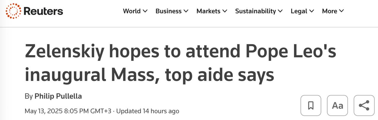Зеленський планує відвідати інагуруційну месу новообраного папи римського Лева XIV у Ватикані в неділю, 18 травня, та поспілкуватися у кулуарах зі світовими лідерами.