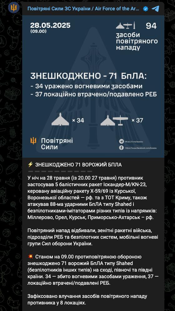 У середу, 28 травня, в Україні триває 1190-й день війни з Росією.