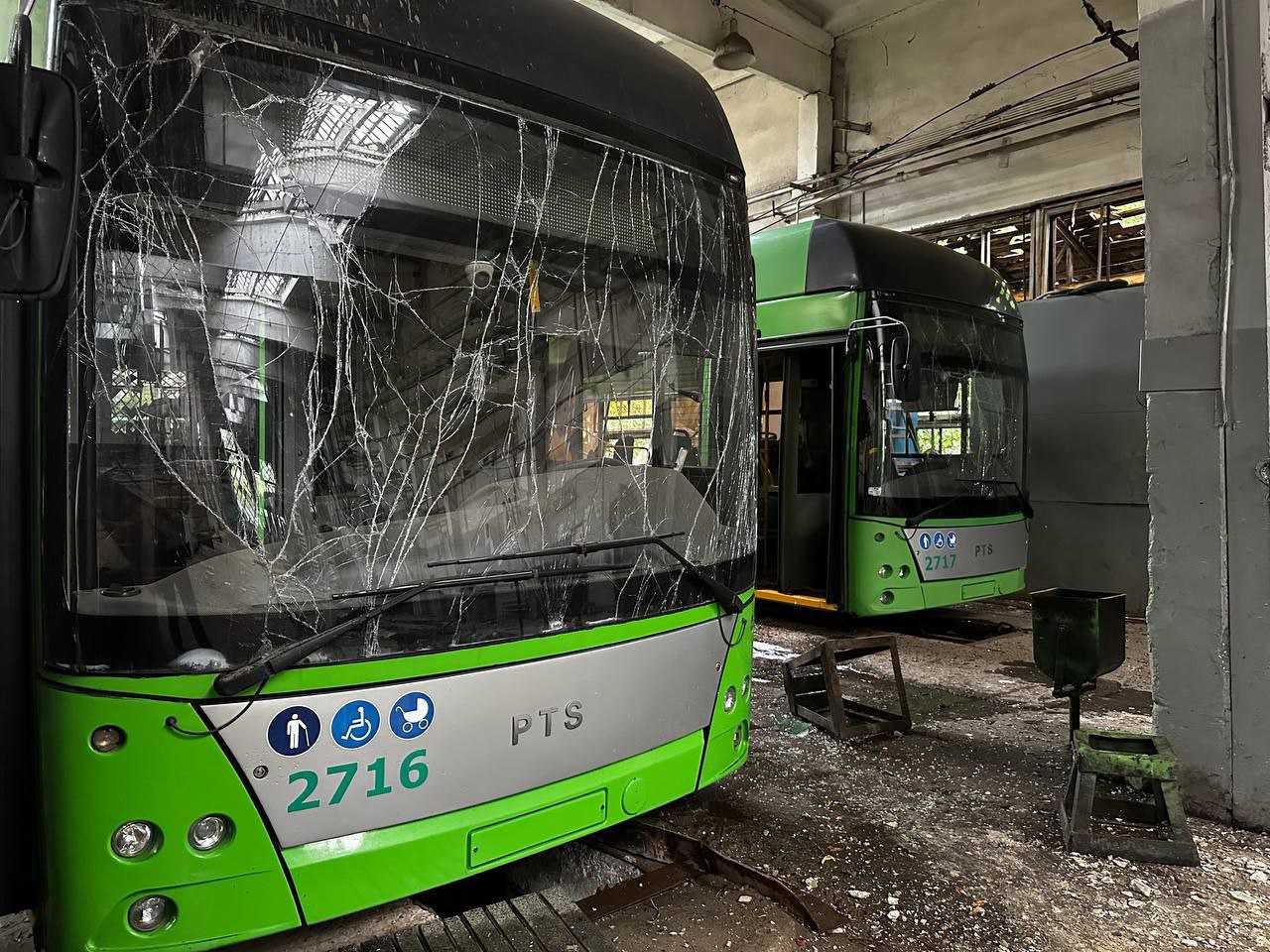 Один тролейбус знищено повністю, ще 18 отримали різні ступені ушкоджень.