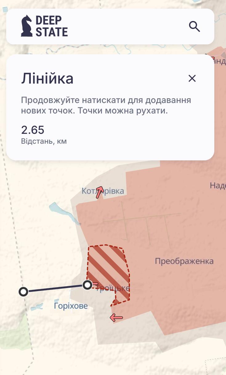 10:43 Армія РФ захопила Романівку на Костянтинівському напрямку та Троїцьке, що за 2.6 км від кордону Дніпропетровської області, повідомляє Deep State.