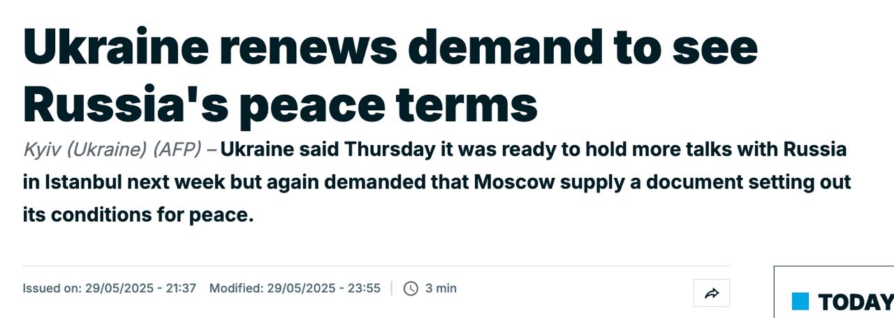 Москва пропонувала зустрітись 2 червня і вже на зустрічі хоче озвучити свої умови для миру.