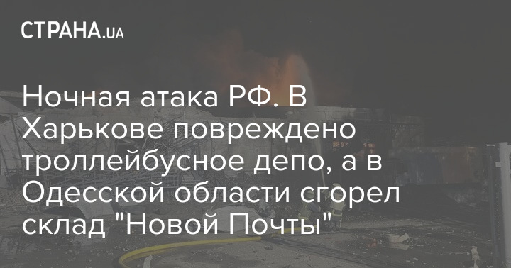 Нічна атака РФ. У Харкові пошкоджено тролейбусне депо, а на Одещині згорів склад "Нової Пошти"
