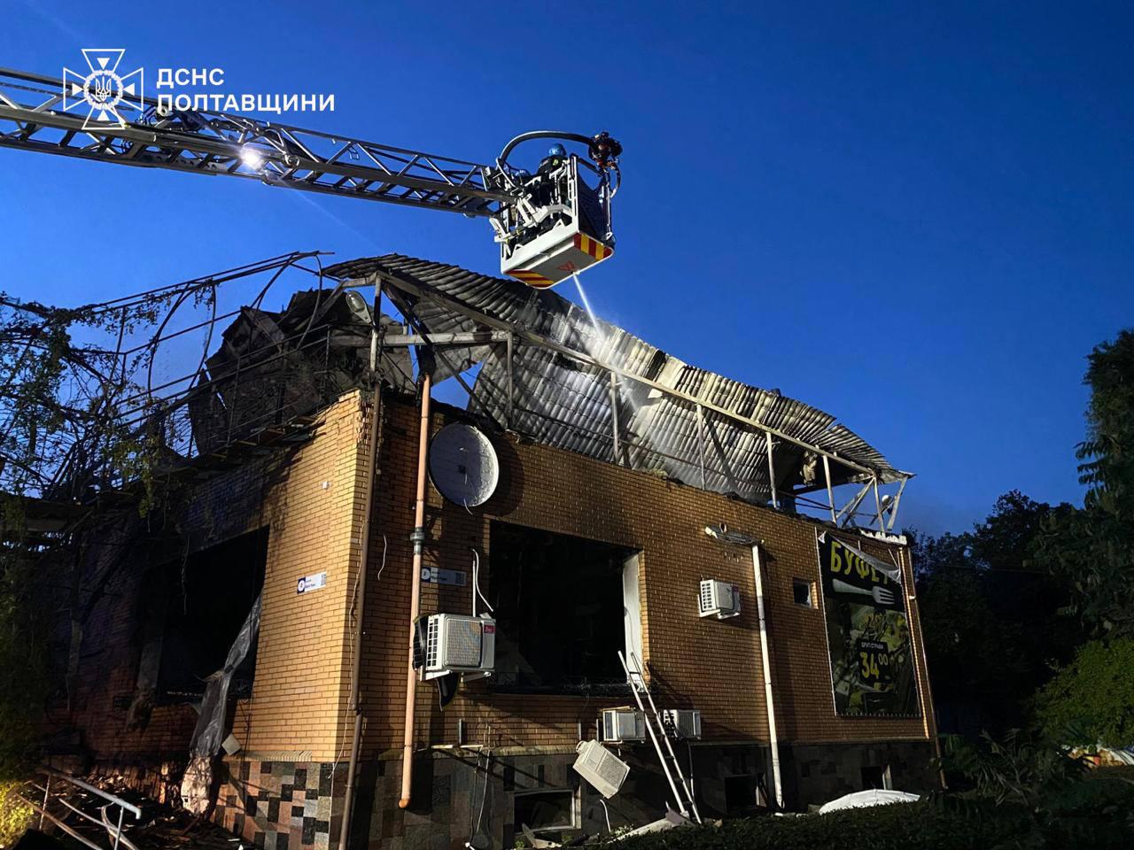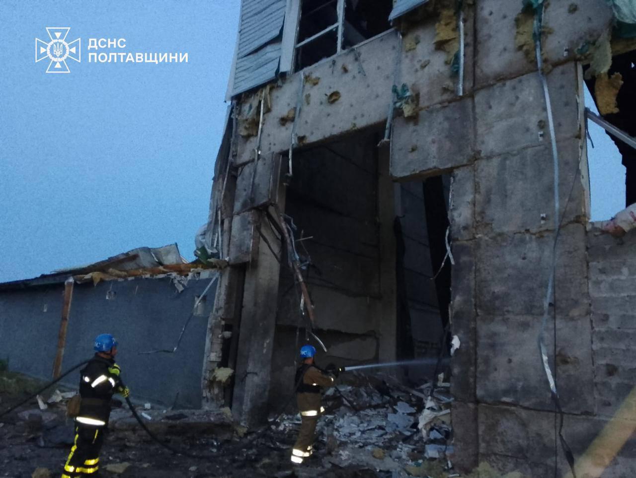 А у Кременчуцькому районі Полтавської області пошкоджено адмінбудівлі, склади підприємств, кафе та приватний будинок. Троє постраждалих.