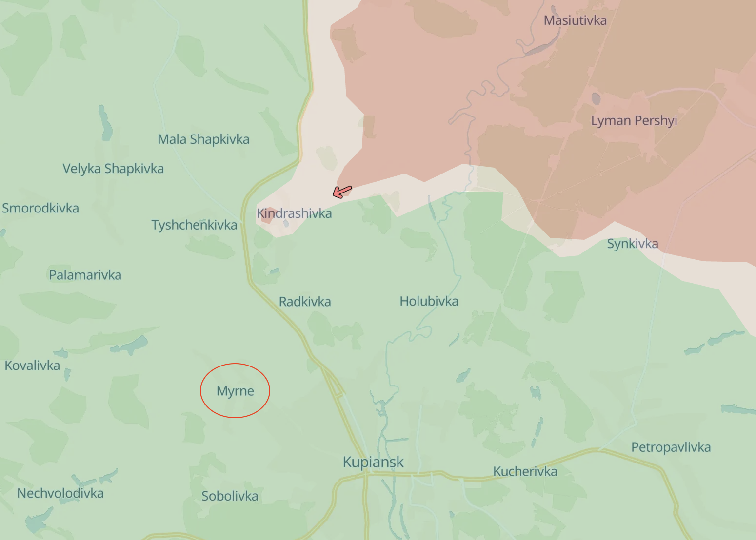 Російське міноборони сьогодні заявило про захоплення села Мирне, яке примикає до північно-західних околиць Куп'янська.