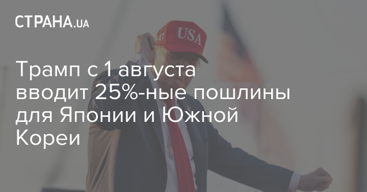 Президент США Дональд Трамп оголосив про введення 25% мит для імпорту з Японії та Південної Кореї. У разі заходів у відповідь Вашингтон має намір збільшити тарифні ставки.