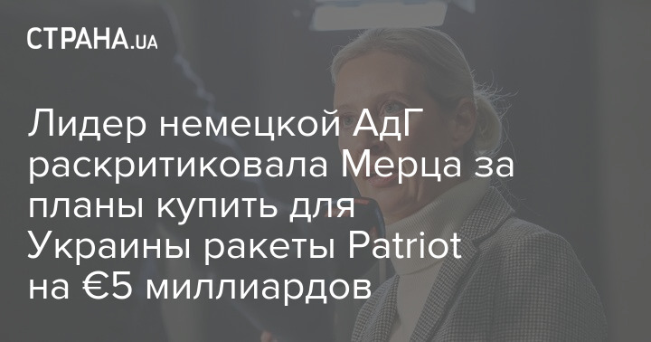"А натомість наша держава, уряд Фрідріха Мерця, дарує Україні дев'ять мільярдів німецьких податків і тепер хоче закупити для України ракети Patriot на п'ять мільярдів. Цього вже ніхто не розуміє", - сказала Вайдель.